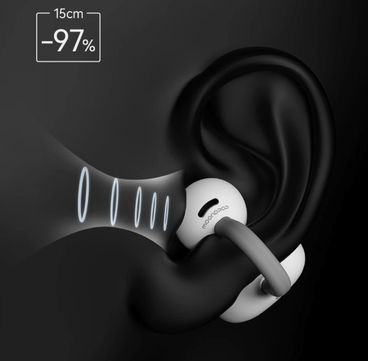 开放式耳机很多人最担心的是“会不会全世界都跟着我一起听歌?”水月雨这次搞了一个“偶极指向传声”的声学结构,基于偶极子声源原理去抵消耳道外的声音辐射。官方给的数据是:正常音量、离耳廓15cm处可以减少97%漏音。简单理解,就是你自己听得挺实在,旁边人除非贴很近、还得安静环境,否则大多时候只会听到一点点背景音。