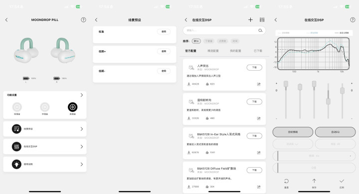 软件生态对喜欢折腾的人也比较友好。iOS/安卓下载Moondrop APP,里面有3档场景预设调音,也有完整的调音社区和图形化EQ,支持5段调节和自动EQ。你要是平时就喜欢看别人的调音曲线、自己拉一拉频响,这套等于直接送你一个“玩具工作台”,百元耳机直接玩出一点HIFI味儿。